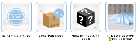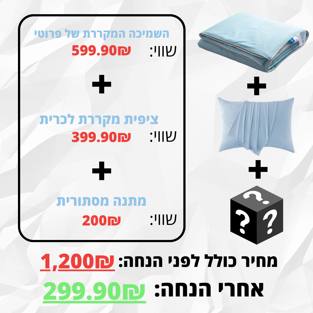 אחרי לילה אחד עם השמיכה המקררת שלנו - לא תוכלו יותר לישון עם שמיכה רגילה, קבלו 90 לילות ניסיון - בחינם בקנייה של השמיכה.