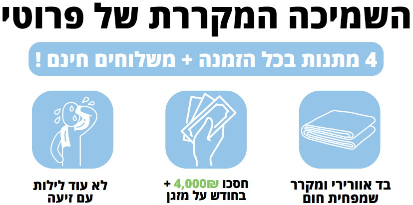 אישתי קנתה לי את השמיכה המקררת של פרוטי אחרי המון המלצות בפייסבוק, ואני פשוט לא נפרד ממנה – גם ביום וגם בלילה! היא קרירה, מרגיעה, ונעימה בטירוף. מתנה מושלמת לקיץ!